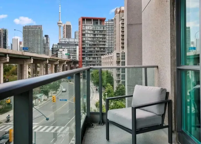 El apartamento Cn Tower View With Free Parking, Pool, Gym, Free Skating, And More Toronto está situado a poco más de 25 minutos a pie del Centro cultural Harbourfront Centre, y a unos 2 km del Mercado de St. Lawrence.